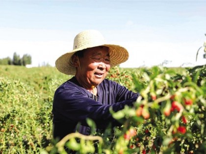 立秋前夕,地处祁连山下的甘肃省张掖市甘州区安阳乡苗家堡村枸杞基地的枸杞进入采摘期,村民们抓住天气晴好时机采摘、晾晒。陈礼摄(人民图片网)立秋前夕,地处祁连山下的甘肃省张掖市甘州区安