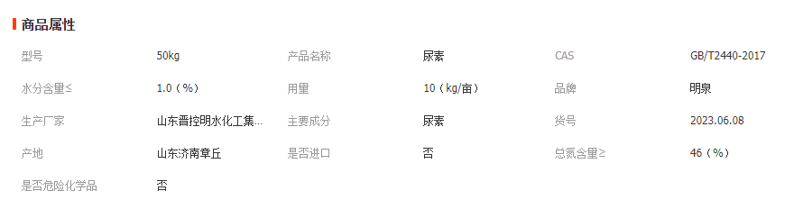 明泉尿素国标GB/T2440